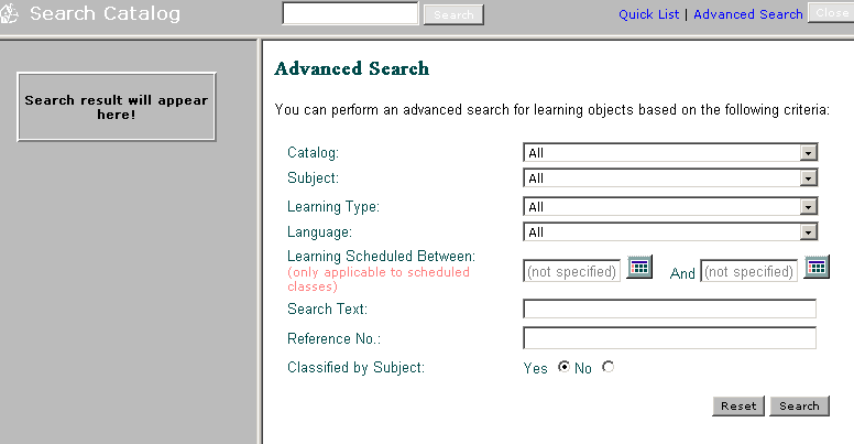 5. To limit your search to a particular Learning Type, click on the q box button next to the Learning Type field.